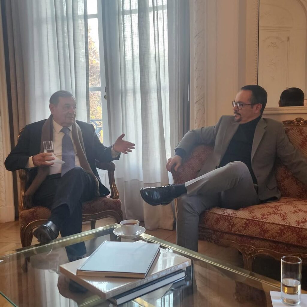En este cálido encuentro pudieron conversar temas internacionales de la actualidad y compartir experiencias del mundo diplomático. El espacio fue propicio para hacerle entrega de su reciente libro “Reflexiones sobre Panamá y su destino de 1990 a 2024”, en donde uno de los capítulos es “Ensayos sobre Francia y los franceses”.