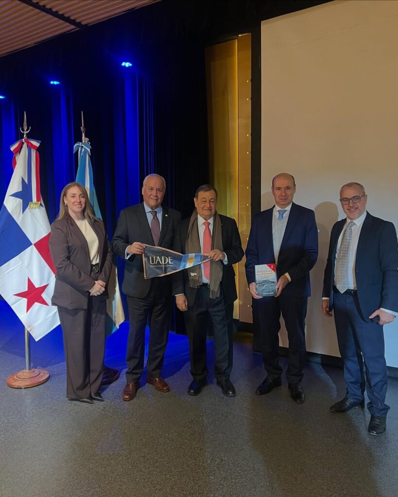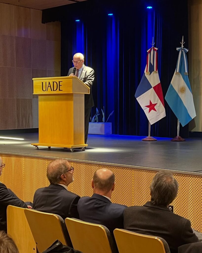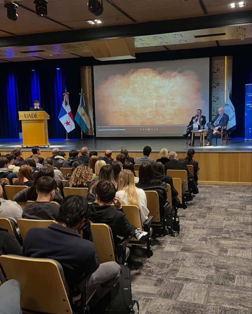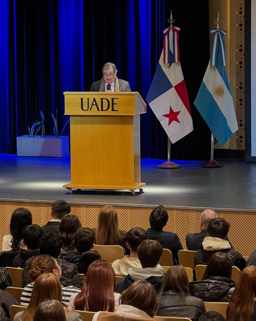 Dictado por el destacado Dr Omar Jaén, escritor, historiador, geógrafo y diplomático panameño, quien a su vez fue presentado por el Embajador de Panamá, S.E. Juan Luis Correa. El evento celebrado el 10 de junio, en el Aula Magna de la UADE, contó con una audiencia de más de 200 personas, entre diplomáticos, académicos, estudiantes e invitados especiales. El programa también incluyó un video completo sobre la obra del Canal de Panamá, una participación nutrida con periodo de preguntas y respuestas, y culminó con la donación del libro al Rector Ricardo Orosco, para la Biblioteca de la Universidad. Fue una excelente jornada!!